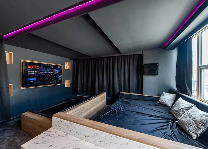 El Hollywood Suite Sasco Apartments está situado en el barrio North Shore de Blackpool y ofrece un rápido acceso al Teatro Winter Gardens de Blackpool, que se encuentra a unos 400 metros. El apartamento cuenta con Wi-Fi y un aparcamiento para los huéspedes que viajen en coche.